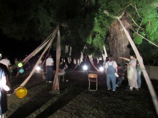 8月31日、市立高原の里交流施設ぽんぽこで、キャンドルナイトinたむぎのが開催されました。この事業は、東北芸術工科大学サークル「みつけたむぎの」が主催したもので、今年で14回目となります。今年のテーマは「物語」。田麦野地域づくり委員会の協力を得て準備を行い、物語や絵が描かれた巨大灯籠と小さな灯籠に火を灯しました。同時に開催されたワークショップでは、物語に入ったとしたら自分はどんな登場人物か想像し、丸うちわやお面で表現しました。参加者は、手作りの提灯を持ち学生と一本杉まで歩いて向かい、ライトアップされた天女の羽衣をイメージした草木染の装飾を鑑賞しました。幻想的でキャンドルの優しい灯を眺めながら、ゆっくりとした時間を過ごし交流を深めていました。