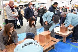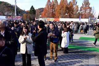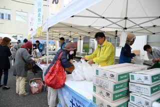 11月8日、天童市農業協同組合本所広場で、第43回天童市農業まつりが開催されました。開会式では、先着300人につや姫と雪若丸のプレゼントが行われました。会場では、天童産の新米やリンゴ、ラ・フランスなどの農産物の販売をはじめ、本市の相互交流協定都市などによる特産物の販売などが行われ、新鮮な秋の味覚を求める多くのお客さんでにぎわいました。