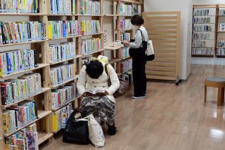 市立図書館の休館に伴い、天童駅ビル構内に仮設図書館が開設されました。木材が香り、温かみのある仮設図書館では、司書が厳選した約2万冊の本を借りることができます。