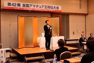 12月6日・7日、滝の湯で、第42期全国アマチュア王将位大会が開催されました。北は北海道、南は山口県から総勢24人の選手が参加し、会場には高校生や大学生など若手選手も多く見られました。大会審判長の森下卓九段の号令で一斉に競技が開始されると、会場は静寂に包まれ、盤上では一進一退の攻防が繰り広げられました。7日の決勝戦の結果、北海道の湯上真司さんが初優勝を飾りました。