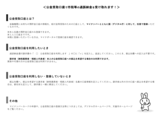 還付金は口座振込によりお返しします。ただし、原則として、還付通知書を発行した最初の日から市税は5年、保険料は2年を経過すると還付金を受け取れなくなります。