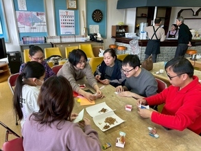 令和7年10月12日、「いも煮・ベトナム料理づくり&お楽しみ会」を開催しました。この日は、ベトナムやミャンマー、タイ、中国などの出身者と市民の方、61名が参加し、山形名物の芋煮汁と、ベトナム料理の生春巻きやバインセオ作りに挑戦しました。バインセオとは「ベトナム風お好み焼き」とも呼ばれ、米粉をベースにした生地に、豚肉やもやしなどの具材を包んで焼き上げたものです。ベトナム出身の方に、バインセオの食べ方をみんなで教わりながら、楽しく食事をしました。また、後半では、マジックショーやじゃんけん大会、ビンゴゲームなどで大いに盛り上がり、交流を深めました。