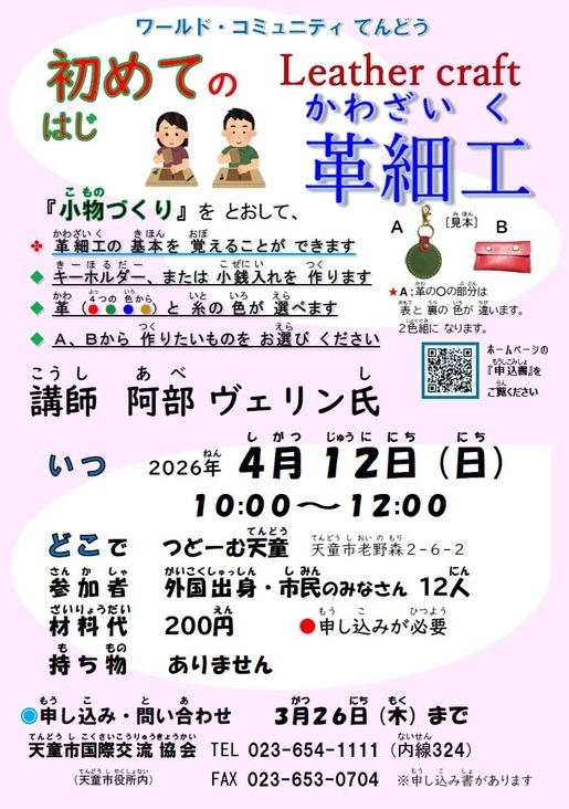 ワールド・コミュニティてんどう ~初めての革細工づくり~